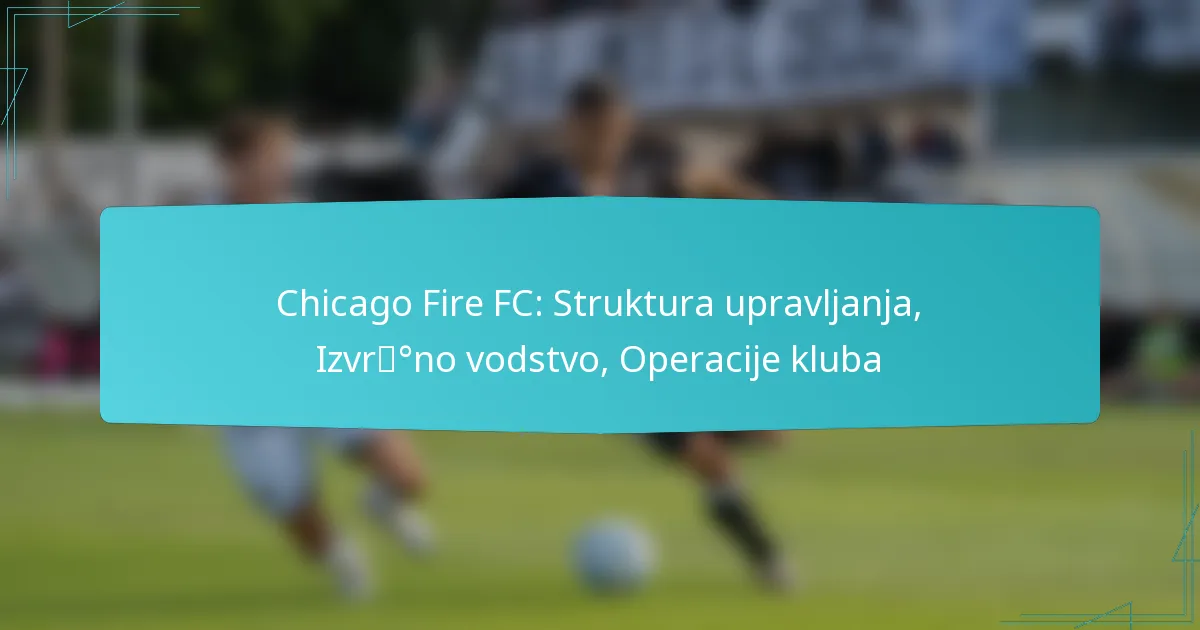 Chicago Fire FC upravlja svojim dnevnim operacijama kroz strukturirani pristup koji obuhvaća financijsko upravljanje, regrutaciju igrača, trening objekte, angažman zajednice i usklađenost s pravilima lige. Ova višeslojna strategija osigurava da klub ostane konkurentan dok jača veze s zajednicom.