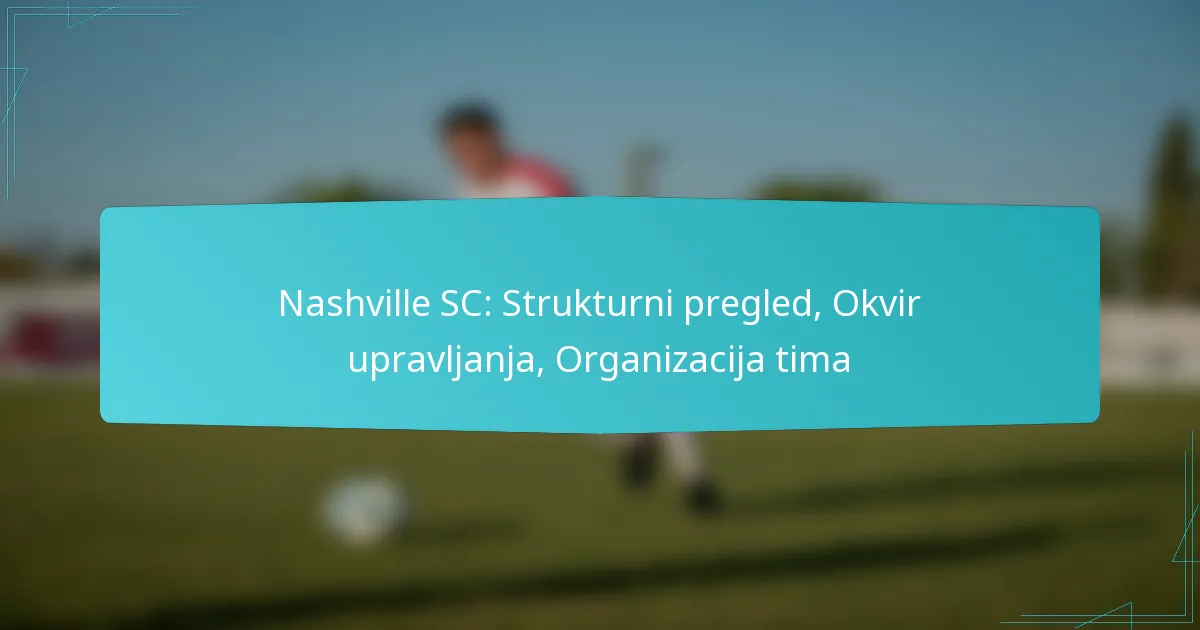 Nashville SC je profesionalni nogometni klub smješten u Nashvilleu, Tennessee, koji se natječe u Major League Soccer (MLS). Klub ima strukturirani upravljački okvir koji uključuje vlasništvo, izvršno vodstvo i posvećeni trenerski tim, svi rade zajedno kako bi postigli uspjeh momčadi. S fokusom na suradnju među odjelima, Nashville SC nastoji optimizirati performanse i ojačati angažman zajednice.