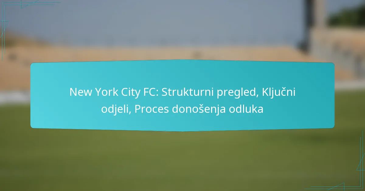 New York City FC (NYCFC) djeluje unutar jedinstvenog strukturalnog okvira koji kombinira vlasništvo, upravljanje i operativne strategije kako bi napredovao u Major League Soccer (MLS). Organizacija kluba naglašava suradnju među ključnim odjelima poput marketinga, razvoja igrača i trenerskog osoblja, koji svi doprinose njegovom uspjehu i angažmanu u zajednici. Donošenje odluka u NYCFC-u slijedi strukturiranu hijerarhiju, potičući usklađenost sa strateškim ciljevima kroz suradnički doprinos različitih dionika.